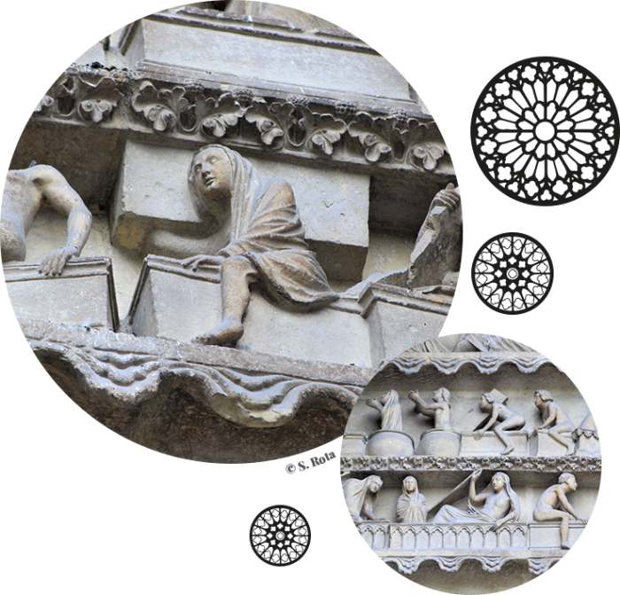 "Ceux qui dorment se réveilleront pour la vie éternelle" Livre de Daniel, chapitre 12. Une incroyable illustration de ce passage biblique anime le tympan du portail du Jugement Dernier, côté nord de la cathédrale. Des hommes, des femmes, nus ou vêtus d'un voile s’éveillent et ouvrent leur tombeau. Certains tentent de s'extirper, d'autres s'étirent ou nous regardent, hagards. On se sentirait presque gêné de les observer dans cette intimité. Dans la Première lettre aux Corinthiens (chap.15), Paul sait que quelqu'un lui demandera : "comment est cette résurrection des morts ?"